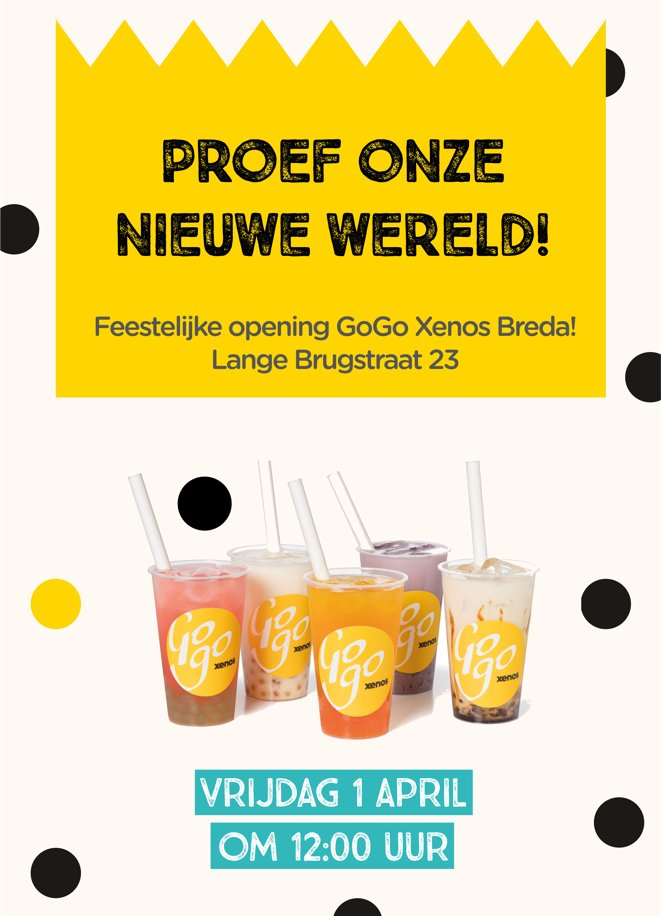 In de Barones in Breda gaat op vrijdag 1 april wel iets héél bijzonders gebeuren. Xenos opent hier een geheel nieuw concept: Xenos GoGo - de allereerste Xenos Bubble Tea Bar. De perfecte uitvalsbasis om tijdens een dagje shoppen een drankje to go te halen, dat nét even anders is.