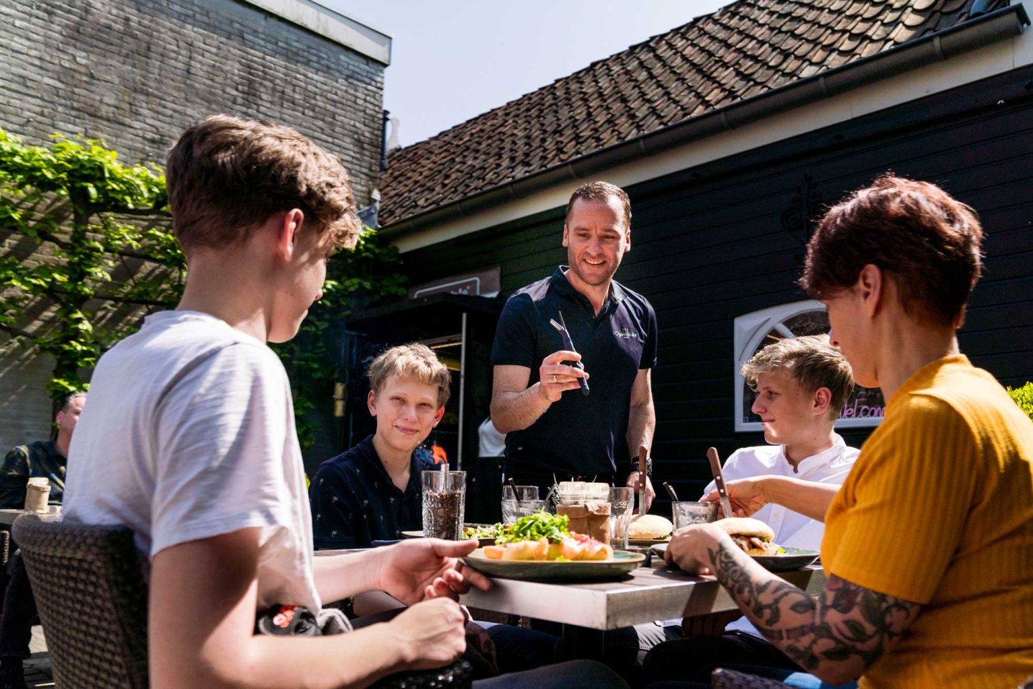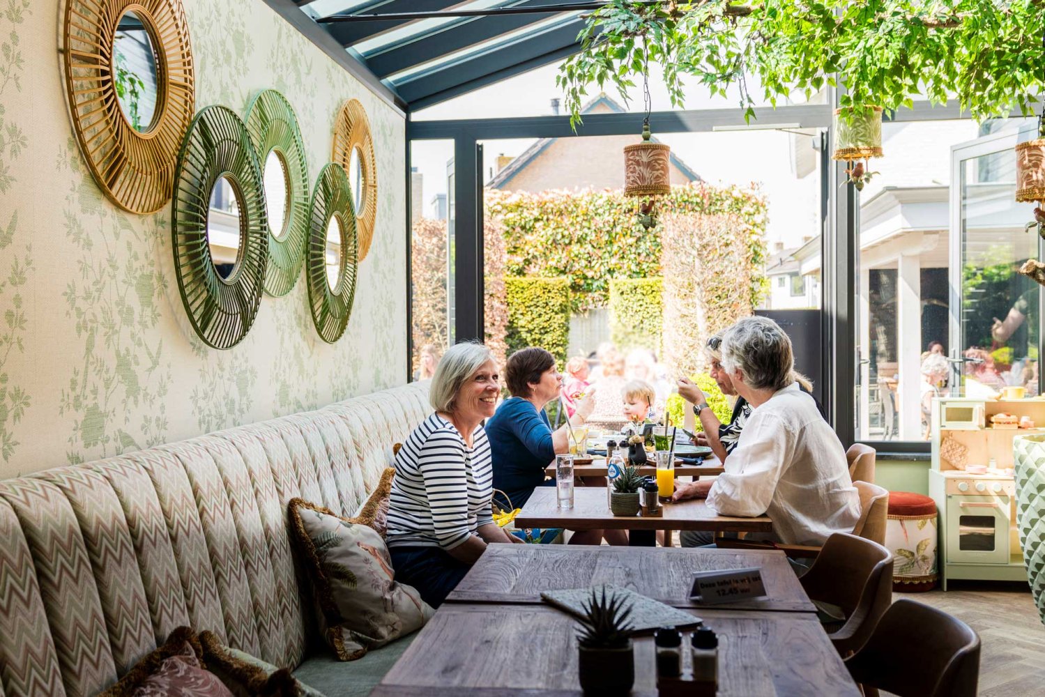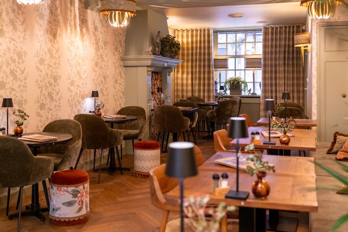 Het karakteristieke pand uit 1800 ademt nostalgie, ons onlangs vernieuwde interieur geeft de zaak een unieke en sfeervolle uitstraling. In de groene binnentuin is een kleine zonnestraal al genoeg om op ons terras te kunnen genieten van koffie met huisgemaakte appeltaart, een heerlijke lunch of een gezellige borrel.