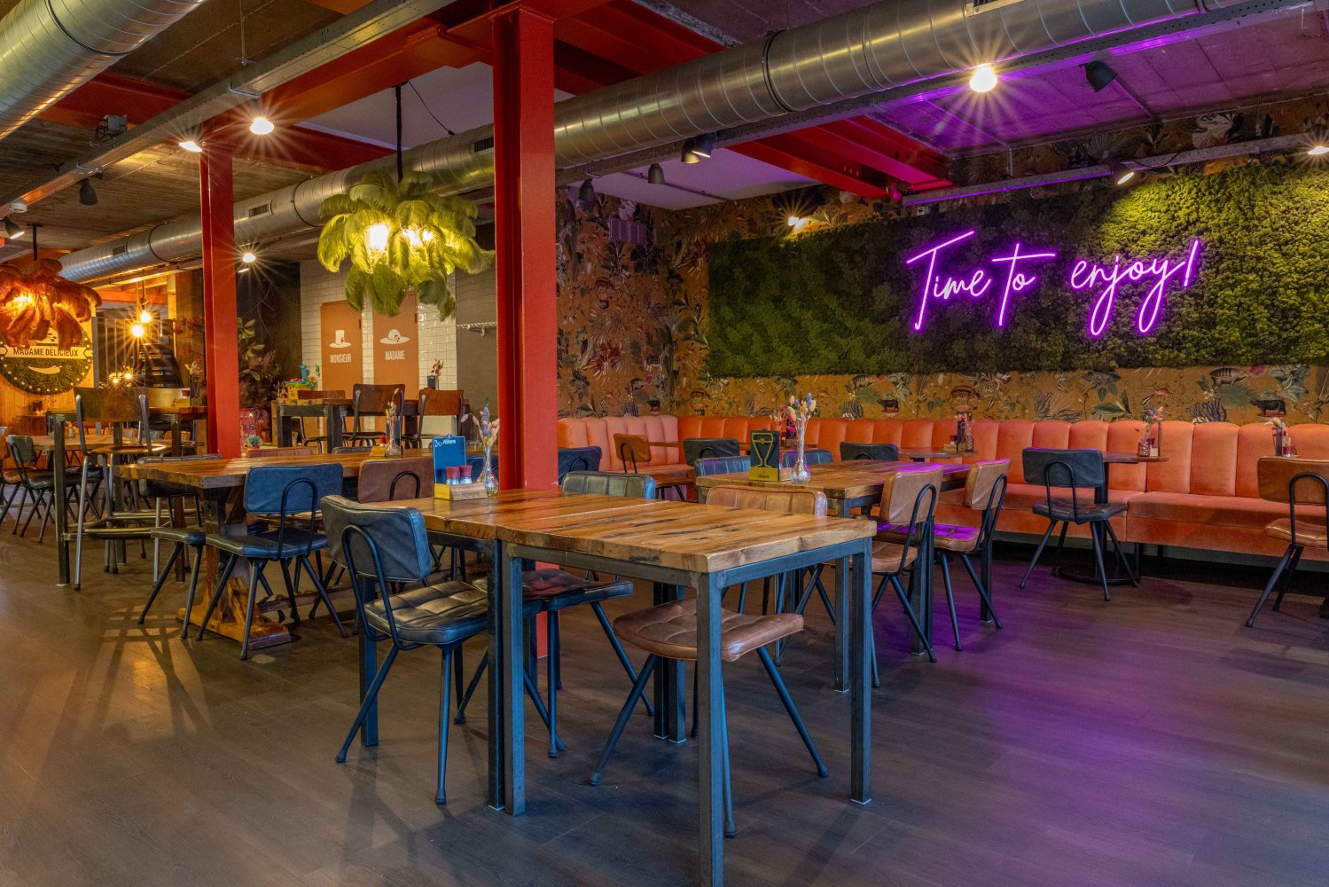Madame Délicieux Brasserie & Delicatessen heeft haar deuren eind April 2016 enthousiast geopend, Een geheel nieuw concept en helemaal van deze tijd. Gevestigd in het voormalige ABN AMRO Pand in Made, Nieuwstraat 53. Bij het bekende pleintje 'Den Deel'. Het voormalige ABN AMRO pand is omgetoverd tot een fantastische horeca gelegenheid. Door de stoere industriële, maar toch warm aangeklede look voelt iedereen zich hier meteen welkom en thuis en dat is ook zeker de bedoeling. De robuuste en bijzondere kluis is ook daadwerkelijk in stand gebleven. Hierin is een praktische koeling gemaakt waaruit wij onze heerlijke gerechten bereiden.